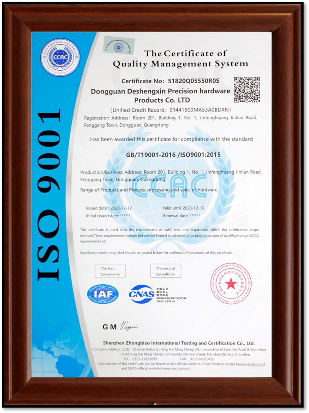 • 質(zhì)量證書